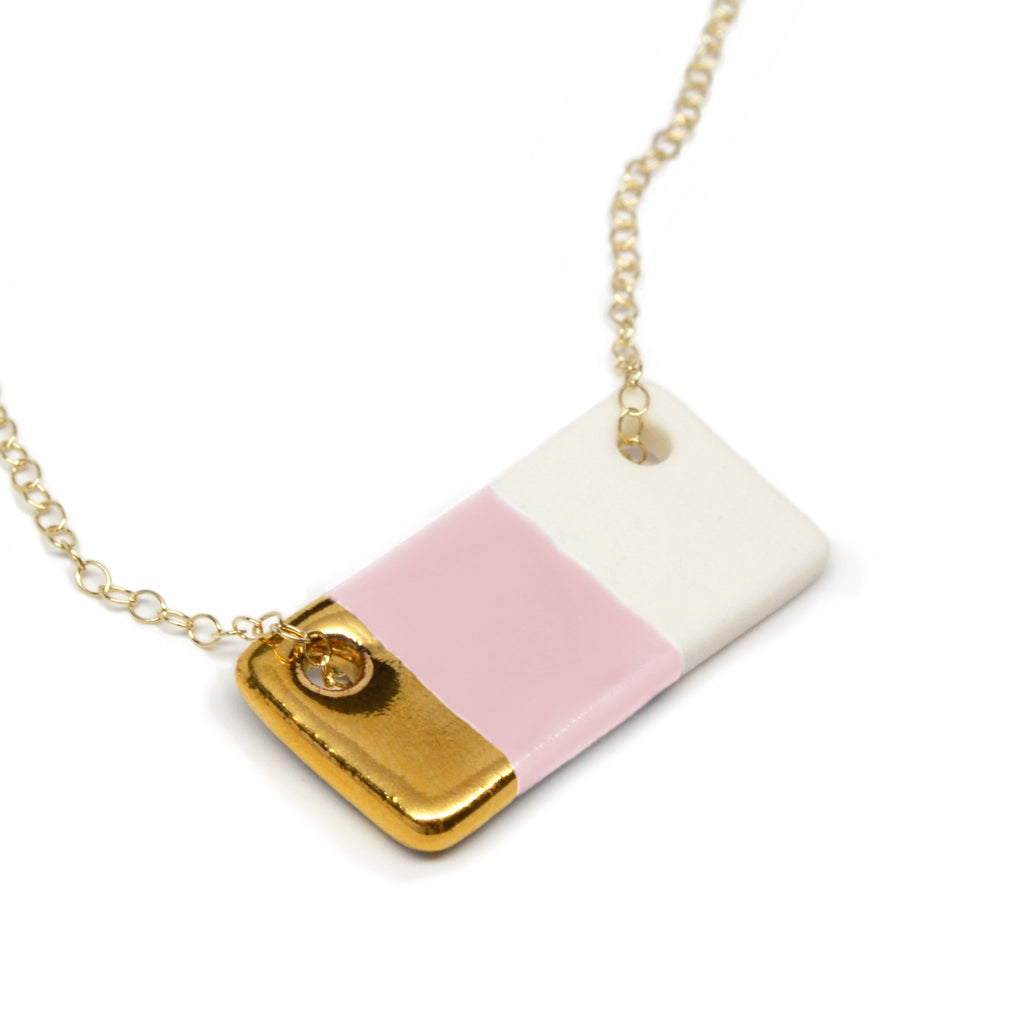 Gold-Dipped Porcelain Bar Necklace in Blush Pink