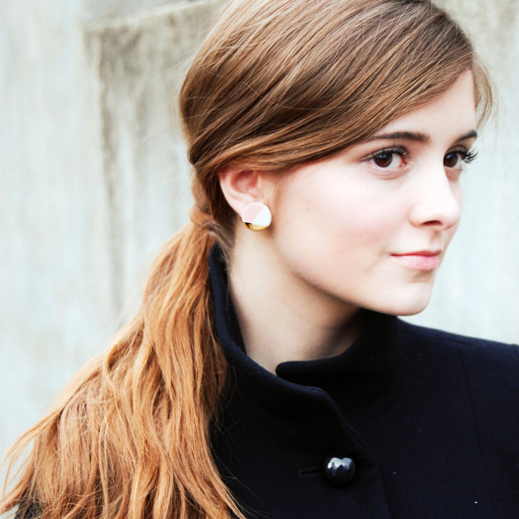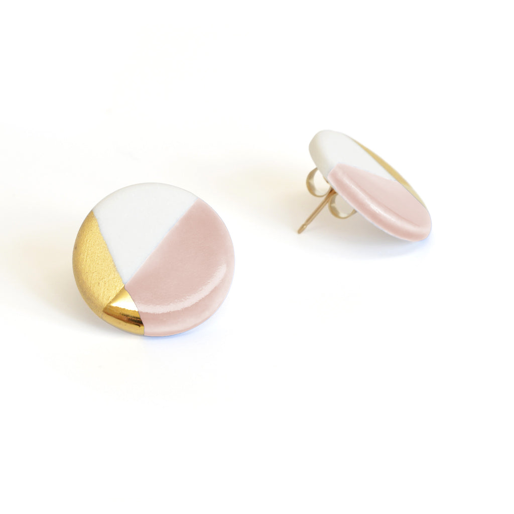Gold Dipped Porcelain Circle Stud Earrings in Blush Pink