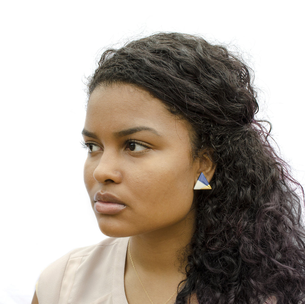 modern triangle studs in blue