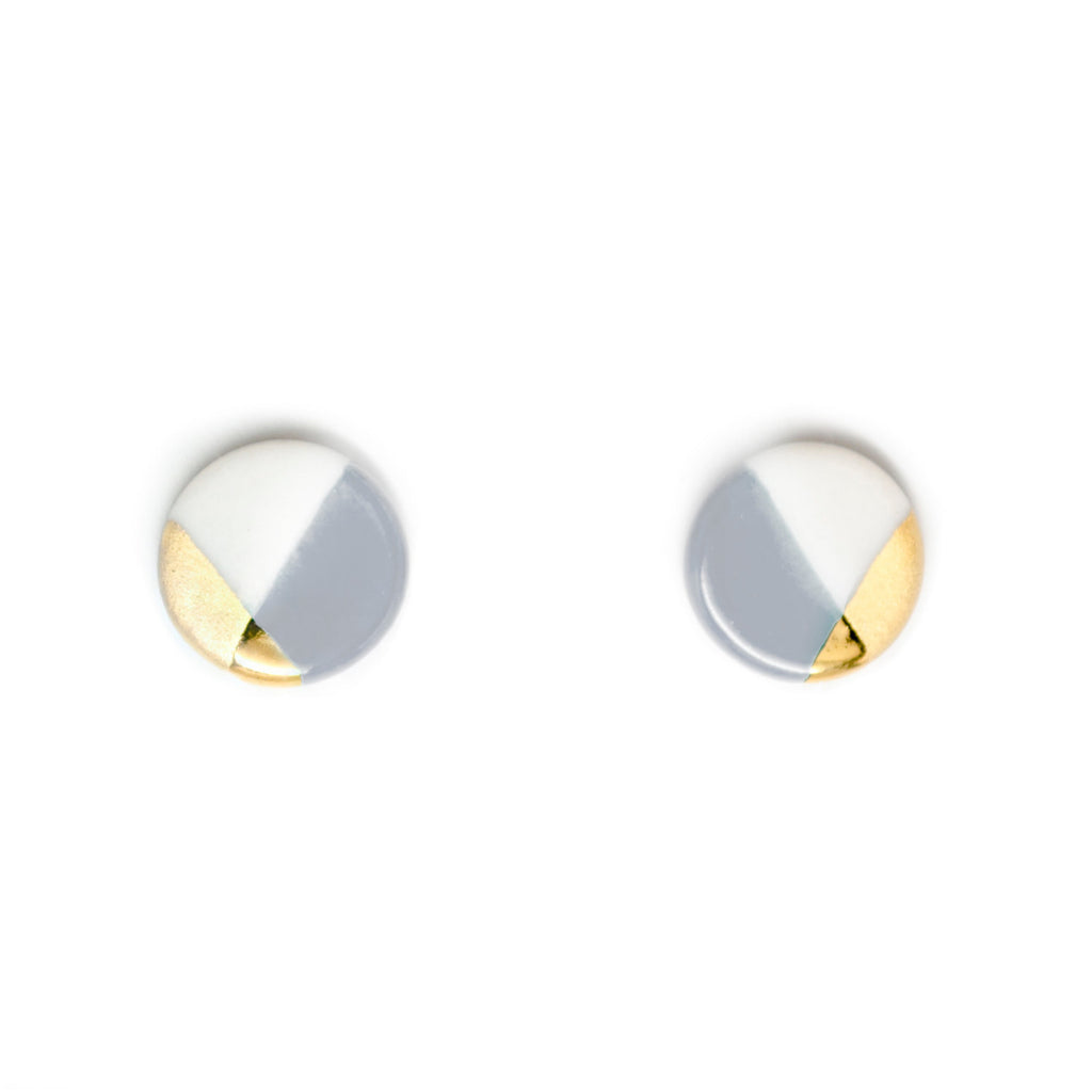 Small Gold Dipped Porcelain Circle Stud Earrings in Gray
