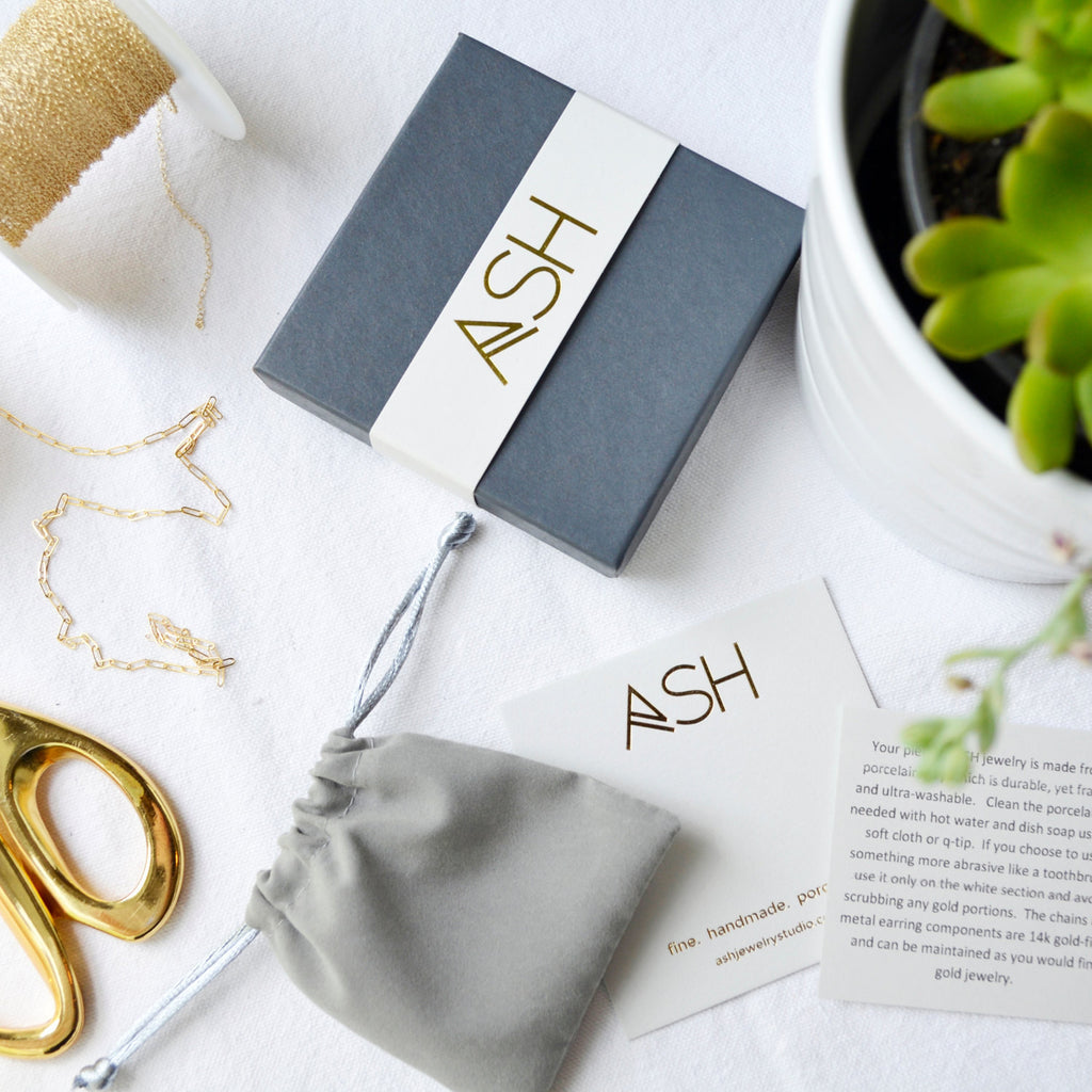 *Packaged in a jewelry box and ready to gift. A velveteen pouch is included in each jewelry box to keep your ASH piece in pristine condition while not in use.