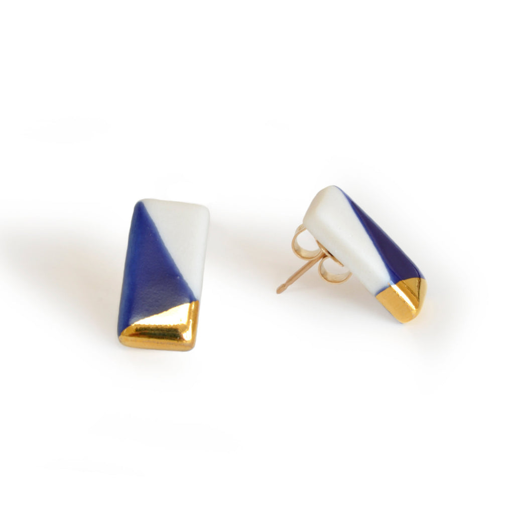 Tiny Rectangle Studs in Royal Blue and Gold