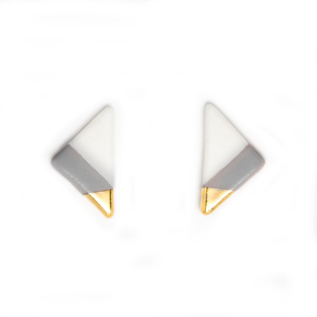 These earrings began as bits of wet porcelain clay. They were meticulously shaped, glazed and gilded, being fired three times throughout the course of creation. The juxtaposition of the smooth matte porcelain and the shiny gold glaze resulted in these works of wearable modern art that will feel luxurious against your skin.