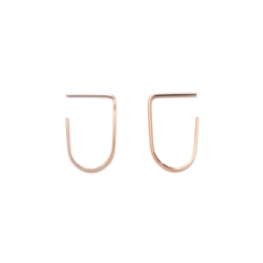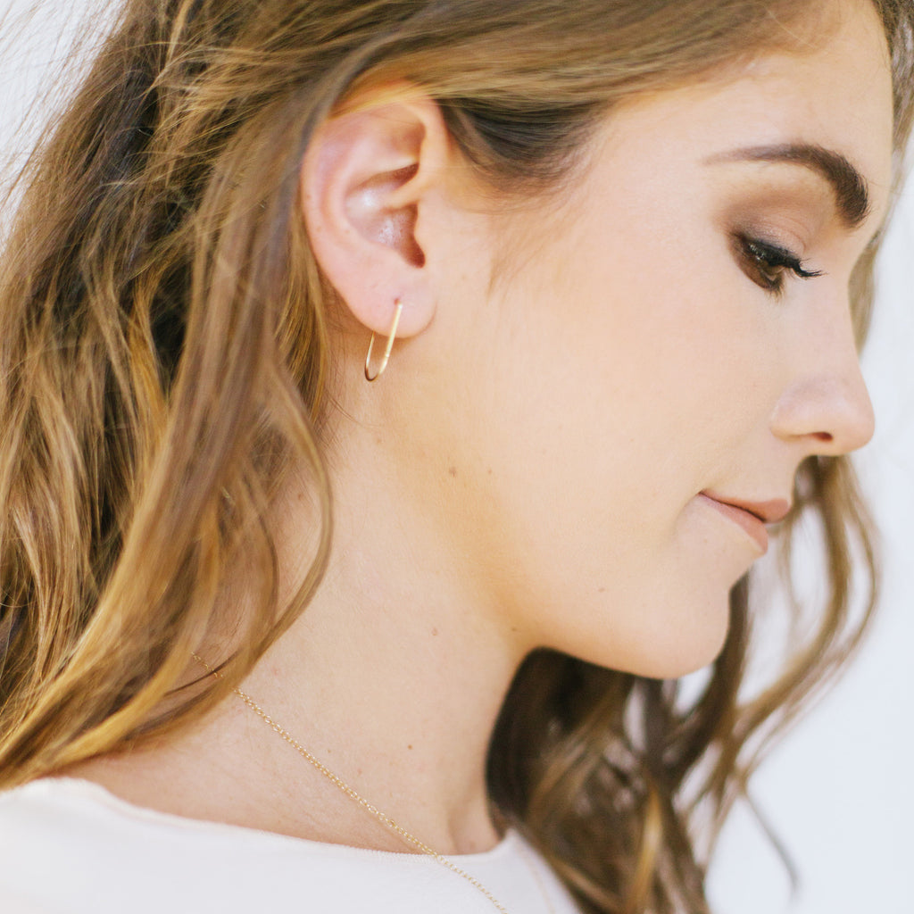 A modern take on the hoop earring, these Arc Earrings are super versatile. There is no right side up on this light weight jewelry. Each pair of earrings comes with rubber backs so that you can choose how you'd like to wear the earrings and keep them in place. You can even hang them different ways in each ear to achieve a mismatched look.