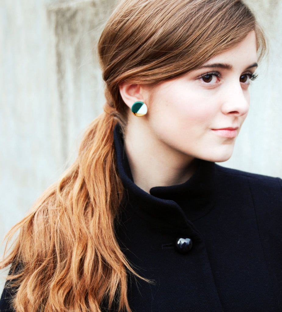 modern circle studs in teal