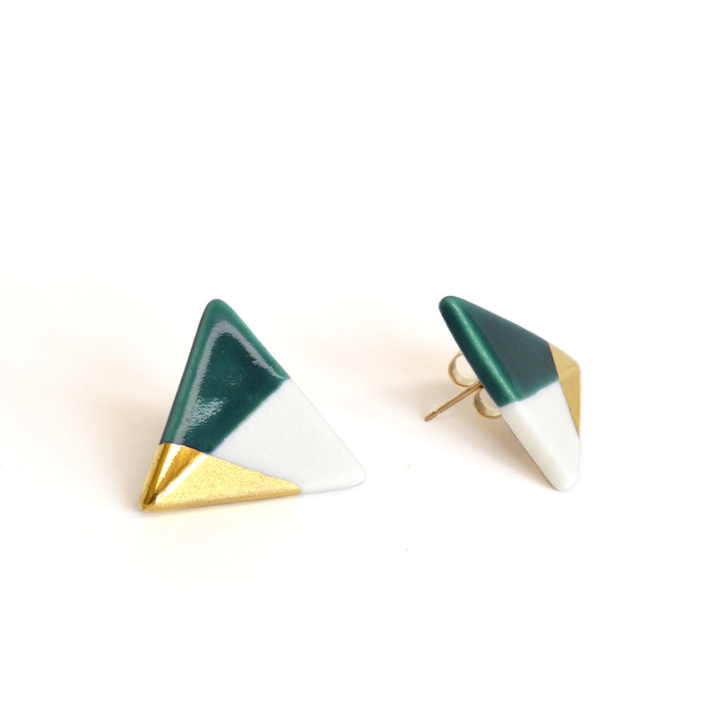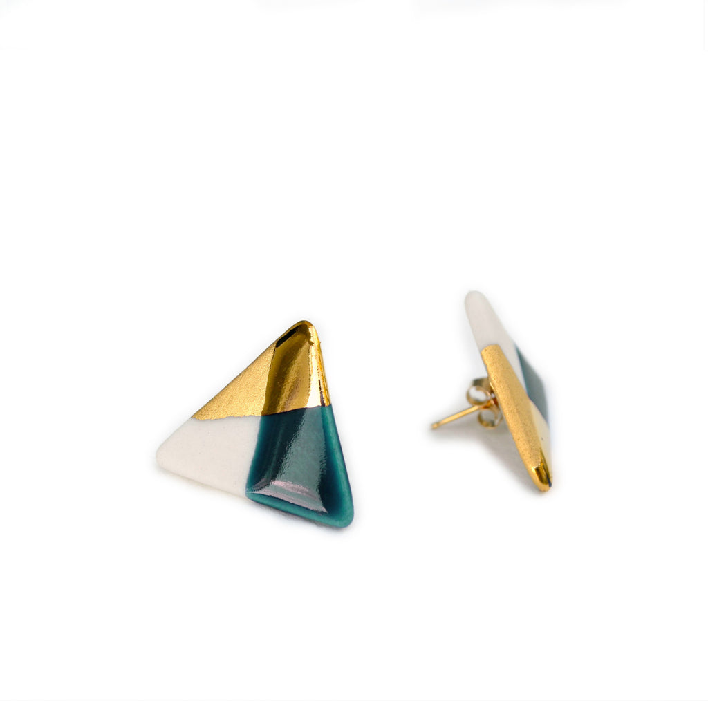 Gold Dipped Porcelain Triangle Stud Earrings in Teal